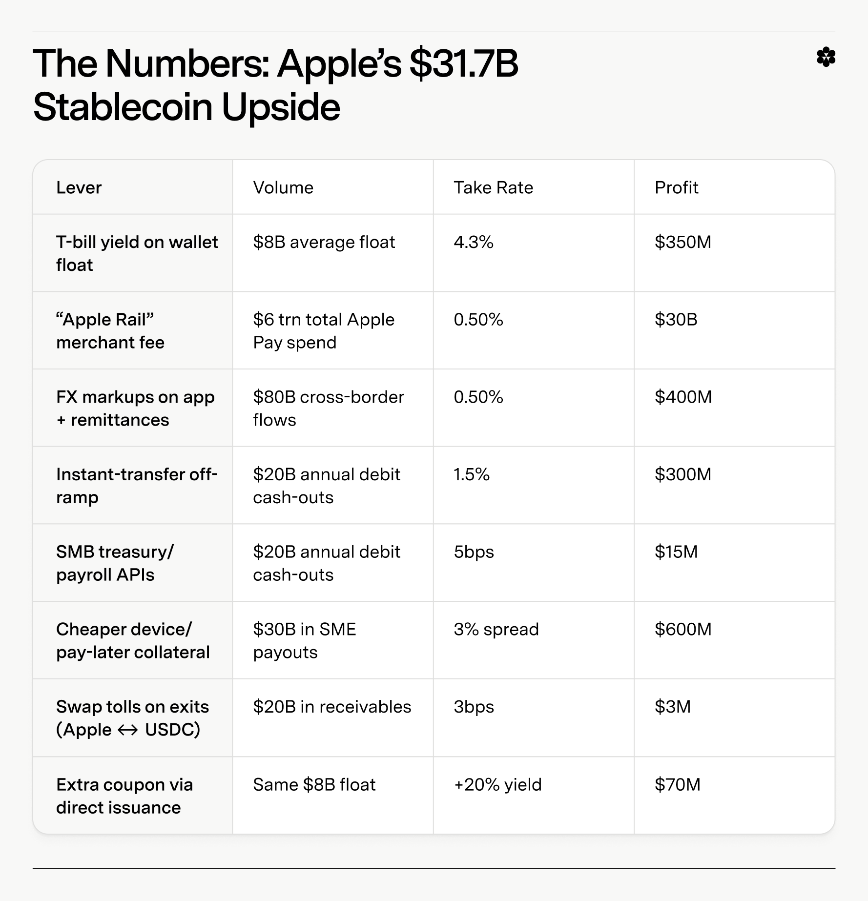Launching a stablecoin doesn’t just unlock revenue. It also gives Apple powerful strategic leverage: