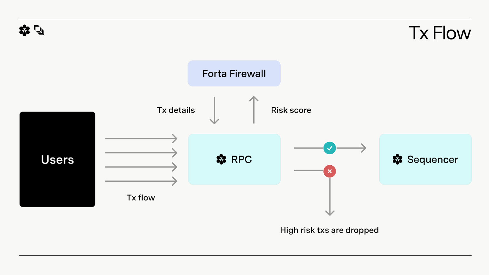 At the center of Plume’s compliance stack is the Conduit G2 sequencer. It serves as the control point for what is allowed to proceed to execution. At ingress, the Conduit RPC applies core compliance checks, including baseline sanctions enforcement. Forta Firewall adds an extra layer of coverage with broader watchlists, fraud signals, and transaction-level risk analysis. G2 consumes that decision and enforces policy at ordering time, so only approved flow is sequenced and written to chain.