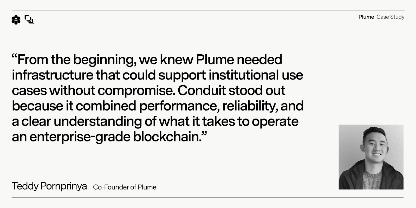 Plume partnered with Conduit for a single-operator infrastructure layer and embedded protocol engineers, combining a verticalized launch platform with hands-on integration of core chain components, compliance features, and day-one app partners, which removed multi-vendor stitching, accelerated time to mainnet, and delivered production-grade performance at a sustainable cost.