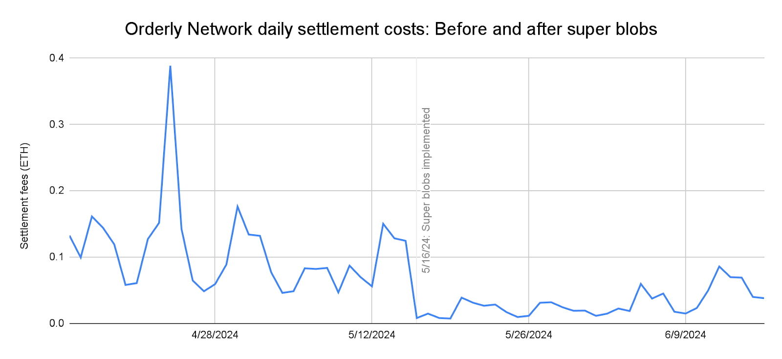 In U.S. dollar terms, Orderly saved more than $8,000 on settlement costs in the 30 days following the implementation of SuperBlobs, while simultaneously increasing activity on the network.