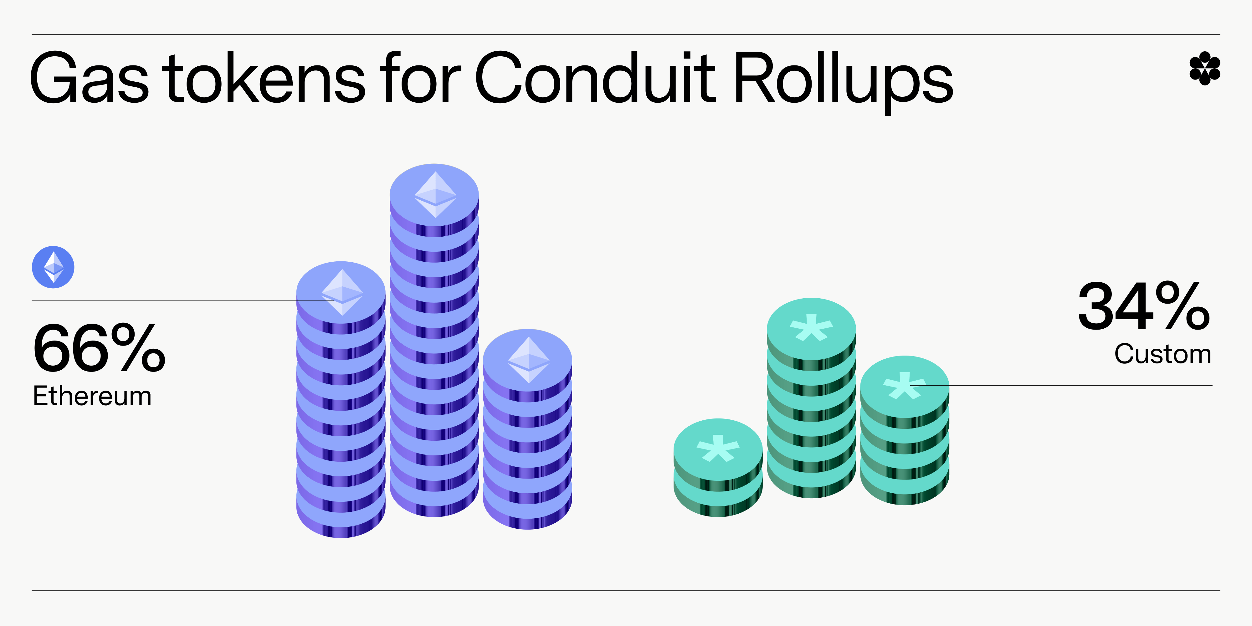 So far, custom gas tokens are still less widely used for Conduit rollups than ETH, at just 34% of tokens.